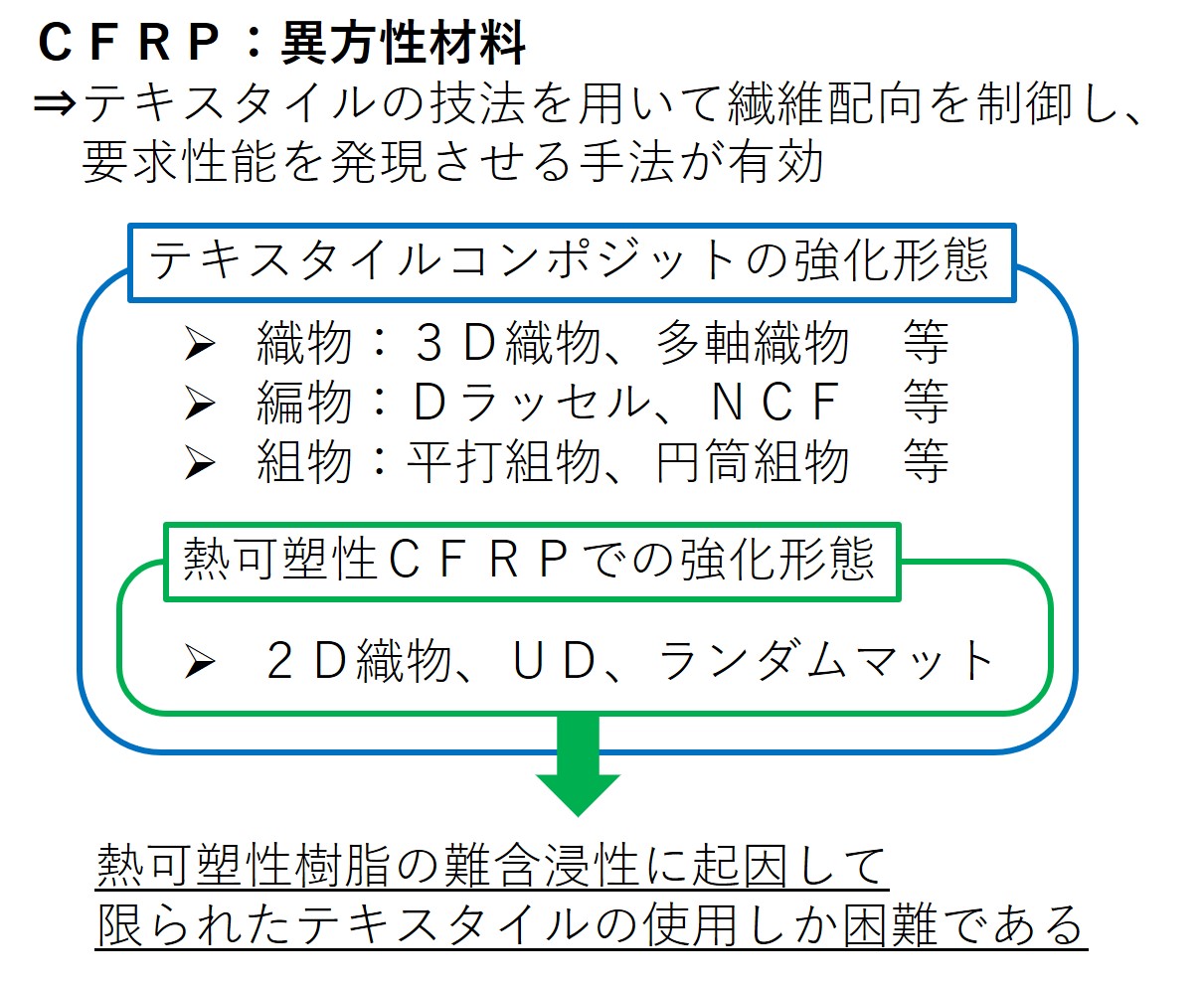 | 技術課題・制約 | ・繊維状、縞状含浸もしくは半含浸コミングルヤーンの形態で提供となります。